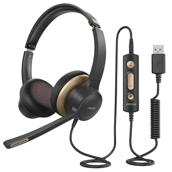 Mpow HC6 USB Wired Headset 3.5mm On-Ear Computer Headphones with Microphone Mute for Skype Call Center Headsets for PC Laptop